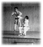 少林寺拳法普及の時代、鹿児島の小学校体育館で演武を披露する森範士 |